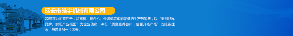 瑞安市皓宇機(jī)械有限公司是瑞安一家私營(yíng)責(zé)任有限公司,注冊(cè)資金200萬(wàn),員工40余人,是具有獨(dú)立法人地位,專(zhuān)業(yè)生產(chǎn)定做各種非標(biāo)準(zhǔn)涂布機(jī)、復(fù)合機(jī)、印刷機(jī)、分切機(jī)、壓膜機(jī)等機(jī)械設(shè)備的制造廠。公司的機(jī)器主要用于生產(chǎn)保護(hù)膜、膠帶、雙面膠、不干膠、相紙、油畫(huà)布、汽車(chē)防爆膜、熱轉(zhuǎn)印、燙金膜、離型膜、離型紙、軟包裝印刷、軟包裝復(fù)合、軟包裝分切等各種產(chǎn)品...  [詳細(xì)]